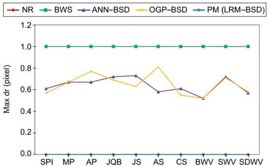 The comparison of the proposed BSD with previous studies in terms of drmax. The NR and PM values are very close to zero.
