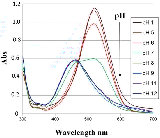 - Rouhani, S.; Salimi, S.; Haghbeen, K. Development of optical pH sensors based on derivatives of hydroxyazobenzene, and the extended linear dynamic range using mixture of dyes. Dye. Pigment. 2008, 77, 363–368. [Google Scholar] [CrossRef]