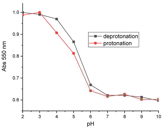 Absorption variations at 550 nm versus pH of NR grafted on the 316 L stainless-steel mirror.
