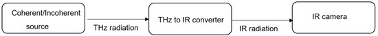The working principle for detection of coherent/incoherent THz source with IR camera by using a THz-to-IR converter.