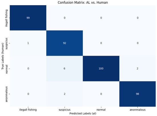 To train the behavior detection models, we used the GFW [] and MarineCadastre [] datasets. To train and test our metamodel using active learning, we used a synthetic dataset created by translating fishing and encounter trajectories from the GFW and MarineCadastre datasets to a real dataset from the coast of Brazil. In the tests we conducted, we can highlight the best performance, which was in detecting normal activities with 100% accuracy, illegal fishing with 99% accuracy, and the worst performance, which was in detecting suspicious activities with 92% accuracy.