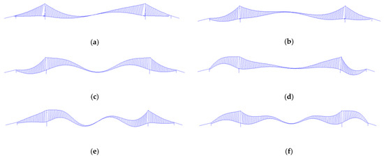 The mode shapes of the bridges derived from the finite element model (a–f).