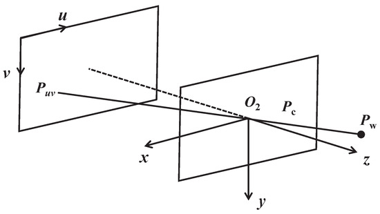 As shown in Figure 3, the camera uses a pinhole model to map the 3D coordinate point in the world coordinate system to the 2D coordinate on the pixel plane.