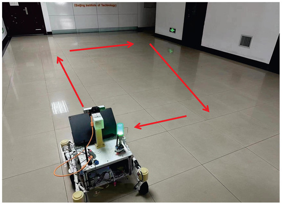 The VINS (Visual–Inertial Navigation System) [11] for wheeled robots integrates low-frequency wheel encoder data to enable scale observation. Zhang et al. [12] designed a novel visual-based localization algorithm by combining camera, IMU, and wheel odometer data, providing more comprehensive information for ground robots. Liu et al. [13] tightly fused camera, IMU, and wheel encoder data, proposing a new extended visual–inertial odometry calculation method that significantly improves localization accuracy. In the field of ground vehicles, Lee et al. [14] effectively fused multi-modal visual, inertial, and 2D wheel odometry measurements in a visual–inertial-wheel odometry system using a sliding window filter approach, providing comprehensive information support for ground vehicles. Zheng et al. [15] improved visual estimation accuracy by directly parameterizing the pose of ground vehicles on SE(2) through an efficient pre-integration algorithm based on SE(2). Carlos et al. [16] developed a tightly integrated visual–inertial SLAM system, ORB-SLAM3, that is capable of performing visual, visual–inertial, and multi-map SLAM using monocular, binocular, and RGB-D cameras. Researchers have proposed various innovative methods across different scenarios, such as the planar PnP algorithm by Li J. et al. [17] and Zou’s analysis and comparison of indoor navigation methods based on LiDAR SLAM. Zhu et al. [18] introduced a stereo visual–inertial fusion system based on VINS-Mono that closely integrates visual and inertial measurements. Additionally, Li J. et al. [19] proposed the Attention-SLAM method that combines a visual saliency model with traditional monocular visual SLAM to simulate human navigation patterns. In summary, pure visual SLAM can suffer from unobservable degrees of freedom under certain conditions, leading to estimation errors, particularly for wheeled robots during straight-line motion or constant local acceleration motion. In such cases, the IMU may not provide sufficient information.