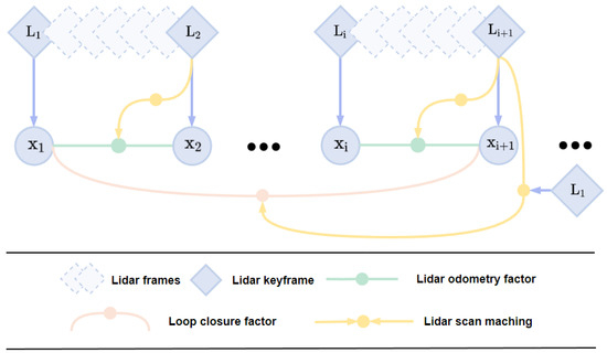 Suppose we wish to add a new state node to the factor graph. The odometry keyframe associated with this state is . To reduce computational complexity, we only input the pose transformation information from the frontend’s keyframe into the node . This yields the relative transformation between and , i.e., the odometry factor connecting these two pose states: