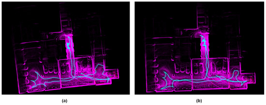 Experimental results from the basement.The (a) shows Fast-lio2, and the (b) shows our results.