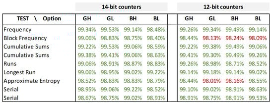- Bassham, L.E., III; Rukhin, A.L.; Soto, J.; Nechvatal, J.R.; Smid, M.E.; Barker, E.B.; Leigh, S.D.; Levenson, M.; Vangel, M.; Banks, D.L.; et al. SP 800-22 Rev. 1a. A Statistical Test Suite for Random and Pseudorandom Number Generators for Cryptographic Applications; National Institute of Standards & Technology: Gaithersburg, MD, USA, 2010. [Google Scholar] [CrossRef]