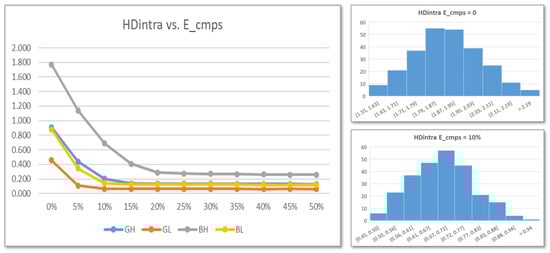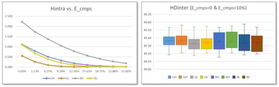 A similar analysis carried out using the reference outputs of the PUFs, obtained after an enrollment process, does not show significant differences. It is also possible to verify that the behaviors do not depend in a decisive way on the different run-time options of the PUF (LH, BG) or on the number of bits of the counters.