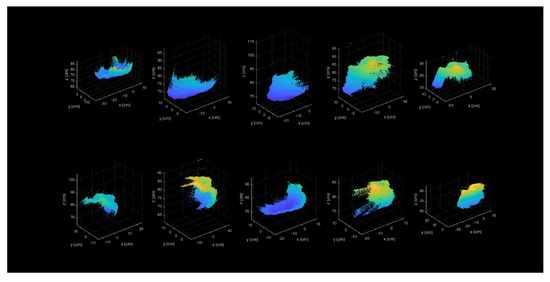 Figure 10 shows the distributions of the three dimensions in a point cloud of rock fragment surfaces.