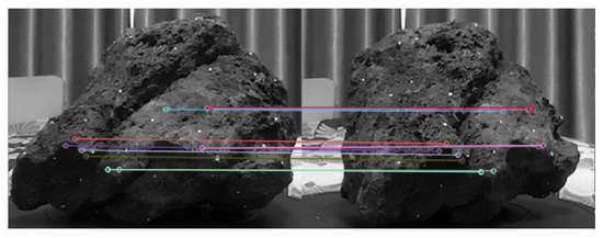 Benefiting from the high resolution of the high-definition RGB image, this study employed the Scale Invariant Feature Transform (SIFT) algorithm [25] to identify corresponding points across images accurately. Figure 4 shows corresponding points in two different images.