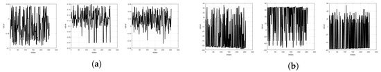 where denotes the measurement matrix and represents the compressed matrix. Roughly speaking, measurements are good if they are incoherent concerning the columns of the sparsifying basis [34], meaning that the rows of the measurement matrix have a small inner product with the columns of the sparsifying basis. The coherence can be utilized to estimate the incoherence, with greater coherence/lower incoherence indicating that fewer rows are required in the measurement matrix and vice versa [35]. In our experiments, we calculate the coherence between different measurement matrices and the sparsifying basis using Equation (11):