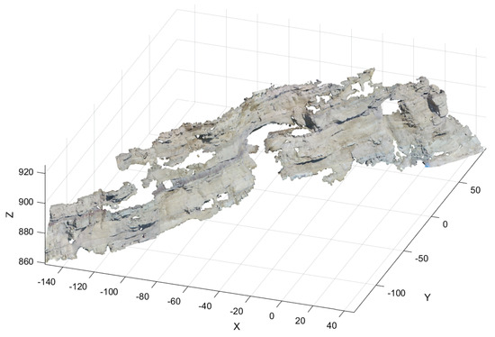 Rock outcrops are large-scale research objects in petrophysics. A mechanical LiDAR camera was used to collect an enormous amount of point cloud data on a rock outcrop [40]. In the compressive sensing field, the DWT based on the Haar wavelet and OMP algorithm is suitable for compression and recovery of mechanical LiDAR signals [10]. In this section, we employ the obtained rock outcrop point cloud data to verify the validation of our proposed method. Figure 24 shows the outcrop point cloud data, while Figure 25 shows the shape of each dimensional signal.