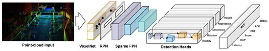 - Lang, A.H.; Vora, S.; Caesar, H.; Zhou, L.; Yang, J.; Beijbom, O. Pointpillars: Fast encoders for object detection from point clouds. In Proceedings of the IEEE/CVF Conference on Computer Vision and Pattern Recognition, Long Beach, CA, USA, 15–20 June 2019; pp. 12697–12705. [Google Scholar]