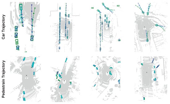 To prevent the propagation of errors and reduce inference time in traditional methods, as they learn independently, researchers [,,,] attempted to perform detection and tracking in an end-to-end manner. With the same purpose, Ref. [] proposed a network that parallelized tracking and prediction using a graph neural network (GNN).