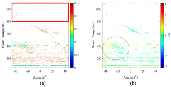 During this experiment, an advanced GB-SAR system was utilized to continuously monitor complex and variable hillsides. With 25 acquired radar images, Figure 3a demonstrates the polarimetric imaging effect presented in the area, from which the distribution of pixel points in the monitoring area can be clearly observed, and the amplitude of most of these pixel points is in the range of [−40, 0] dB. By setting the ADI threshold to 0.25, a total of 41,402 PS points were successfully identified (as shown in Figure 3c).