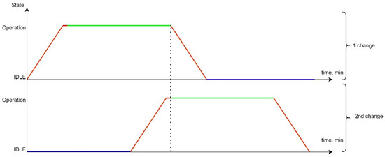 The sequence of departures of UAVs from the depot (point C) is established by decreasing the distance between the depot and the destination point: the UAV furthest from its destination point takes off first, and so on. This strategy is characterised by the significant consumption of the UAV’s on-board battery resources, which is the most distant from its destination.