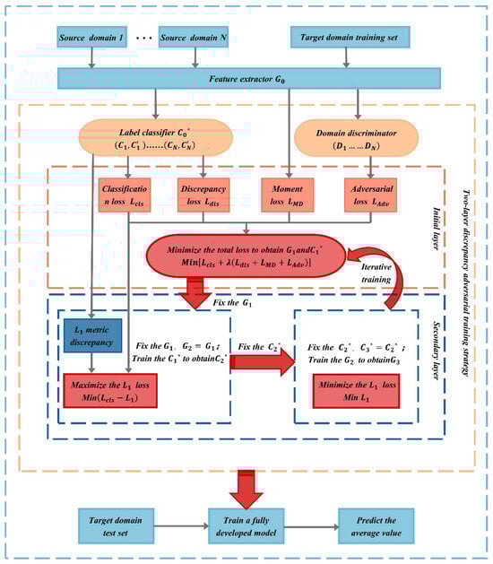With the rapid advancement of artificial intelligence technology, deep learning techniques for feature extraction have become increasingly prevalent across various fields. The extracted features are not limited to traditional time-domain and frequency-domain characteristics but are adaptively learned from data or images through data-driven approaches. Consequently, many researchers have increasingly applied these techniques to the recognition of high-speed train operating conditions. Liu et al. [46] proposed a method for identifying small-amplitude hunting instability in high-speed trains based on a multi-source two-layer discrepancy adversarial approach. Building on initial layer adversarial training, their method incorporates secondary layer adversarial training to better learn distinguishable features and enhance the accuracy of diagnostic tasks. A schematic diagram of their optimized feature extraction method is shown in the Figure 5. Zhao et al. [47] applied three different deep learning models to extract features from simulation data for state recognition, achieving excellent results with all methods.