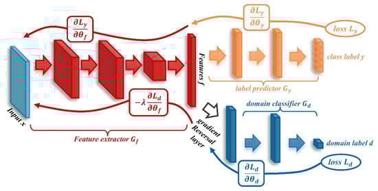 - Ganin, Y.; Lempitsky, V. Unsupervised domain adaptation by backpropagation. In Proceedings of the International Conference on Machine Learning, Lille, France, 7–9 July 2015; pp. 1180–1189. [Google Scholar]