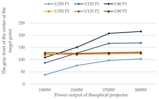 Figure 4. Test results analysis diagram of the output power of the projector flash effect on the projection target gray level.