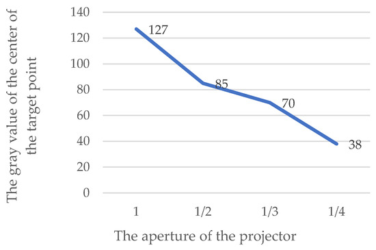As shown in Table 2 and Figure 5, the larger the aperture of the projector, the brighter the projected targets.