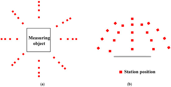 Figure 10. Measurement network diagram: (a) Top view of measurement network; (b) Side view of measurement network.