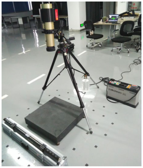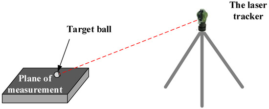 According to the conditions of the test site, the laser tracker was set up at a distance of 2–3 m from the measured object at an appropriate angle, as shown in Figure 15. It was then connected to the computer to carry out a single-point or continuous measurement.