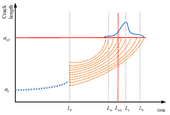 In Equation (39), LBi is the effective life coefficient of blade i at node 1; Lref is the reference time node provided by the inspection and maintenance strategy to reach the reference crack area aref; Le is the expected time node for the particle to reach the reference crack area aref; Lb is the optimal time node for particles to reach the reference crack area aref; and Lw is the poorer time node for particles to reach the reference crack area. Based on the life coefficient and life distribution, the following actions can be taken: