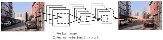 The prediction process of YOLOv5 (as shown in Figure 2) involves the following steps: Initially, the input image is resized to the dimensions required by the model. Subsequently, the image is fed into the convolutional neural network, which extracts image features and predicts multiple bounding boxes, confidence scores, and class probabilities. Then, YOLOv5 employs non-maximum suppression (NMS) to eliminate redundant bounding boxes, retaining only those with the highest confidence scores. Finally, the model outputs detection results that include bounding boxes, confidence scores, and class labels. These results can be further processed or displayed for various applications.