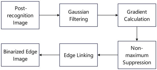 The Canny algorithm is a classical edge detection technique that precisely extracts edge information from an image (as shown in Figure 3). Initially, Gaussian smoothing is applied to reduce the impact of noise. Subsequently, the gradient magnitude and direction of the image are calculated, typically using the Sobel operator to obtain gradient information for each pixel. Then, non-maximum suppression is performed to retain only the most significant edges and refine these edges. Following this, double threshold processing classifies the gradient magnitudes into strong edges, weak edges, and non-edges. Strong edges are directly marked as edges, while weak edges are assessed to determine whether they are connected to strong edges. Finally, edge refinement is carried out to remove redundant pixels, making the edges thinner and more continuous.