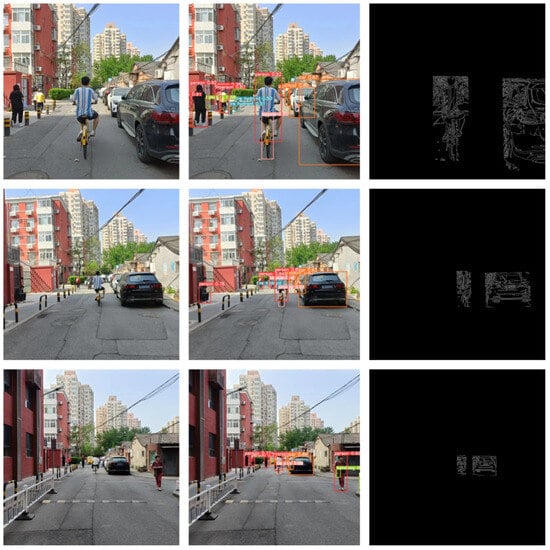 We can see that urban roads are very busy, and the road conditions change frequently, so the system’s low-latency feature (overall latency controlled within 50 ms) ensures that safety warnings can be issued in real time in the busy urban road environment. In addition, by setting the camera’s sensitivity as a variable parameter and adjusting it in real time according to lighting changes, the system can handle data under different lighting conditions and maintain a high level of detection accuracy.