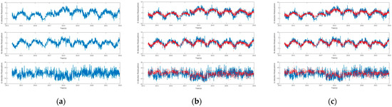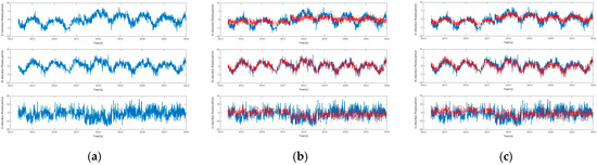 Filtering results before and after using ICA and WICA methods. (a) Before filtering. (b) After filtering with ICA. (c) After filtering with WICA.