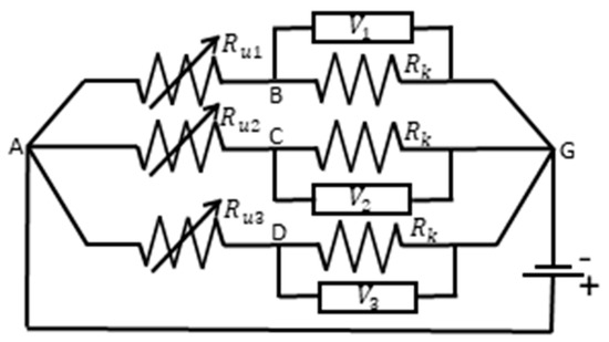 As shown in Figure 3, 5.6 kΩ resisters (Rk) were connected in series with each resistive path, creating bridge circuits.