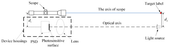 For the construction of the model and the calibration of the parameters, a method of using a scope to assist the optical axis to accomplish the intersection is proposed, as shown in Figure 12.