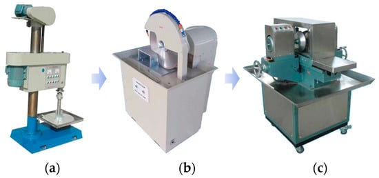 Intact specimen preparation process. (a) Drilling; (b) cutting; (c) polishing.