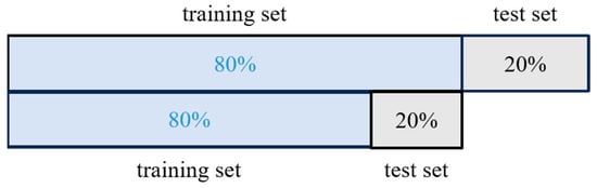 Figure 17 illustrates the method of segmenting the dataset into a training set comprising 80% of the data and a test set comprising the remaining 20%. Within the training set, 80% were used for model training while the remaining portion served as validation data [35,36].