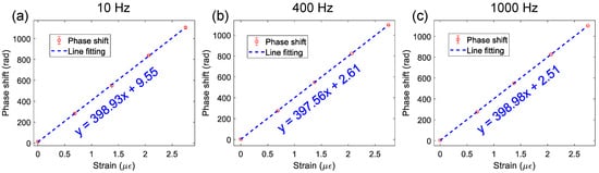 | Frequency (Hz) | Sensitivity (rad/με) | LoD (pε/Hz1/2) |