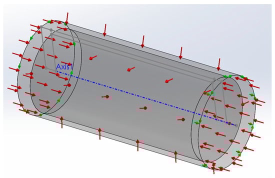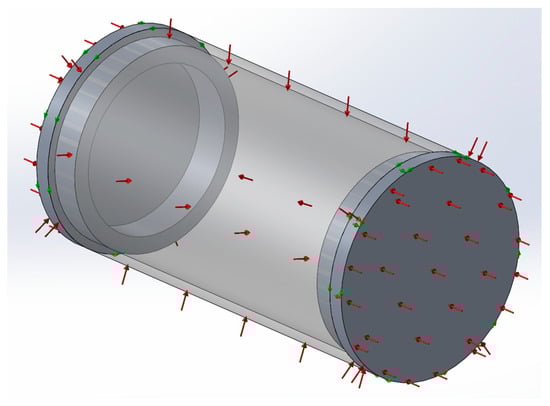 - External loads: pressure along the whole outside surface area of the cylinder.