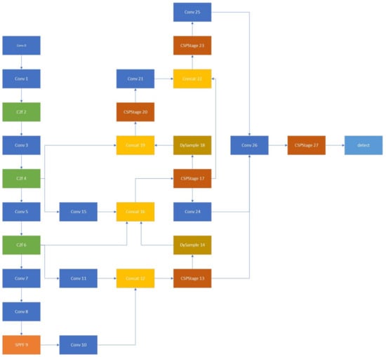 - Wang, C.Y.; Bochkovskiy, A.; Liao, H.Y.M. Scaled-yolov4: Scaling cross stage partial network. In Proceedings of the IEEE/CVF Conference on Computer Vision and Pattern Recognition, Nashville, TN, USA, 20–25 June 2021; pp. 13029–13038. [Google Scholar]