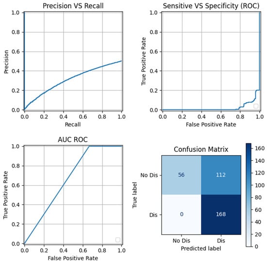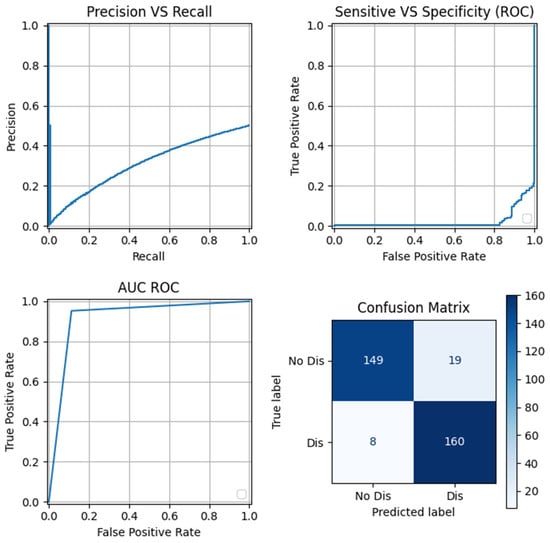 Figure 7 graphically presents some of the metrics explained in Section 3.1 which correspond to the best model according to Table 1, which is the second row of the OCSVM model. The first graph from the top left to the right down is the “Precision vs. Recall” graph, which visualizes the trade-off between precision and recall for a model across various thresholds. This visualization is helpful in understanding the balance between identifying TP and avoiding FP, guiding them in selecting an appropriate threshold based on their specific objectives and the implications of FP and FN in their application. Analyzing in detail the confusion matrix for the best model, all the disturbances were identified correctly. In this case of study, is better to identify all of them in order to minimize problems in the grid and the impact that could have on the industry.