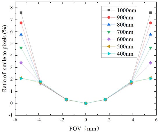 Spectral bending at different wavelengths of Offner spectral imaging system.