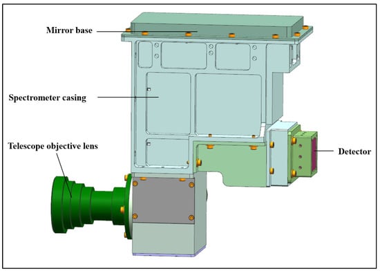 The optical system of the hyperspectral imager is comprised of a front telescope system and a spectral imaging system. In accordance with the requirements for unmanned airborne applications involving large field-of-view and high-resolution hyperspectral imaging detection, the primary technical specifications of the hyperspectral imager are presented in Table 1.