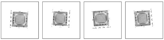 The chip is packaged using a ceramic base, with the packaged chip consisting mainly of a ceramic base, a metal cap, and metal leads. Due to the high absorption of X-rays by metal, the metal cover plate and leads appear as deeper shadows in the X-ray image. In addition, X-rays pass through defective and non-defective areas with different degrees of attenuation, resulting in differences in the intensity of the X-rays reaching the detector, which produces images of different brightness on the computer display. Figure 2 shows an example of a raw X-ray image of a chip taken by an X-ray inspection system at a resolution of 1536 × 1536. Due to the small size of the chip, most of the X-rays reach the detector without passing through it, resulting in a strong X-ray signal. As a result, the acquired X-ray image of the chip contains a significant amount of bright (almost white) background information.