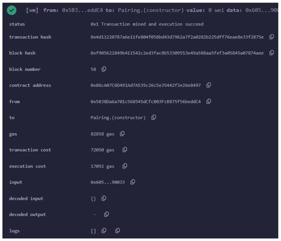 The proposed smart contracts were evaluated through the Sepolia test network, which is an Ethereum testnet that uses PoA as a consensus mechanism. The smart contracts were compiled and run through the remix IDE platform [51]. The Zokrates version which upon the proposed cicruits were built and the proofs were generated was 0.8.4 in the Ubuntu 22.04 LTS operating system. As was mentioned in Section 3.2, the proof system that was used for the zk-SNARK proof construction is the Groth16 system, which is a scheme based on pairing-friendly elliptic curves, such as the Barreto–Naehrig 128-bit curve (in our case). Groth16 was chosen because of its smaller proof sizes, constant-time verification, and better performance [52,53] over the Pinocchio, Marlin, GM17, and other schemes.