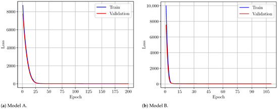 For Models A and B, the optimization is based on minimization of the mean squared error between the true output and predicted one. As can be seen from Figure 8, the training process of Models A and B is associated with good convergence of the loss function.