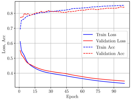Loss and accuracy (Acc) curves improvement during training and validation of Model P.