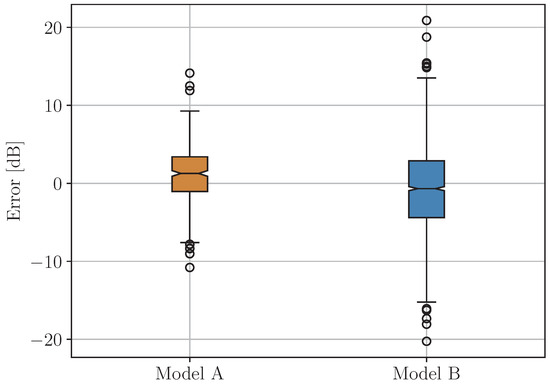 The obtained experimental results show excellent performance of the compound model in terms of a root mean square error of the prediction as low as dB and a coefficient of determination as high as 0.702. This accuracy is fully satisfactory for its practical application. Moreover, the accuracy can be further increased if an improved version of the classification model is developed. This is because the two regression models are characterized by even better accuracy (root mean square error of the prediction of dB for line-of-sight scenario and dB for non-line-of-sight condition).
