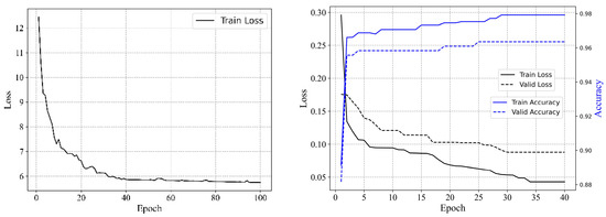 In this setup, the model is initially pretrained on a selection from the unlabeled training dataset. It is then fine-tuned on a small dataset to which labels have been randomly assigned. Due to the limited size of the fine-tuning dataset, data augmentation techniques are employed to enhance data diversity. Taking A09-PL-01 as an example, the processes of pretraining and fine-tuning are illustrated in Figure 9. The figure demonstrates that during pretraining, the loss decreases with an increase in the number of training epochs, stabilizing around 40 epochs. In the fine-tuning phase, the loss continues to decrease, with accuracy progressively exceeding 0.9. After fine-tuning, the model’s ability to detect anomalies in the unlabeled test set is evaluated. The model’s predictions are output as probability values, with probabilities above a certain threshold indicating positive classes (anomalies) and those below it indicating negative classes (non-anomalies).