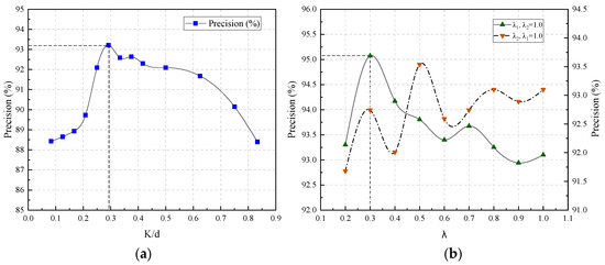 Figure 12a illustrates the impact of time step selection on overall performance, in which the x-axis represents the proportion of time step length to feature length, and the y-axis shows the variation in precision values, with all weights set to 1.0. The graph indicates that moderately increasing the proportion of time steps can enhance performance, but an excessive proportion may impair it. This is because larger time steps reduce the dataset available for training, leading to poorer outcomes. In our dataset, the model performs best when the time step is approximately 30% of the feature length (batch size), thus setting the time step to 10 in the configuration.