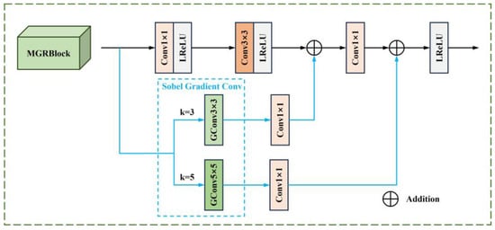 The MGRB module is designed by combining different scales of gradient operators containing one main stream and two residual gradient streams. The detailed structure is presented in Figure 3.