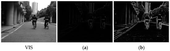 Therefore, the two modal features can be regarded as an integration of common features and complementary features. Consequently, for the image features and output from the MGRB module, the complementary features embedded within the visible features , as well as those inherent in the infrared features , can be obtained, which are defined as